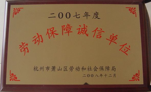 2008年12月,浙江佳力科技股份有限公司被杭州市蕭山區(qū)勞動和社會保障局評為2007年度勞動保障誠信單位。