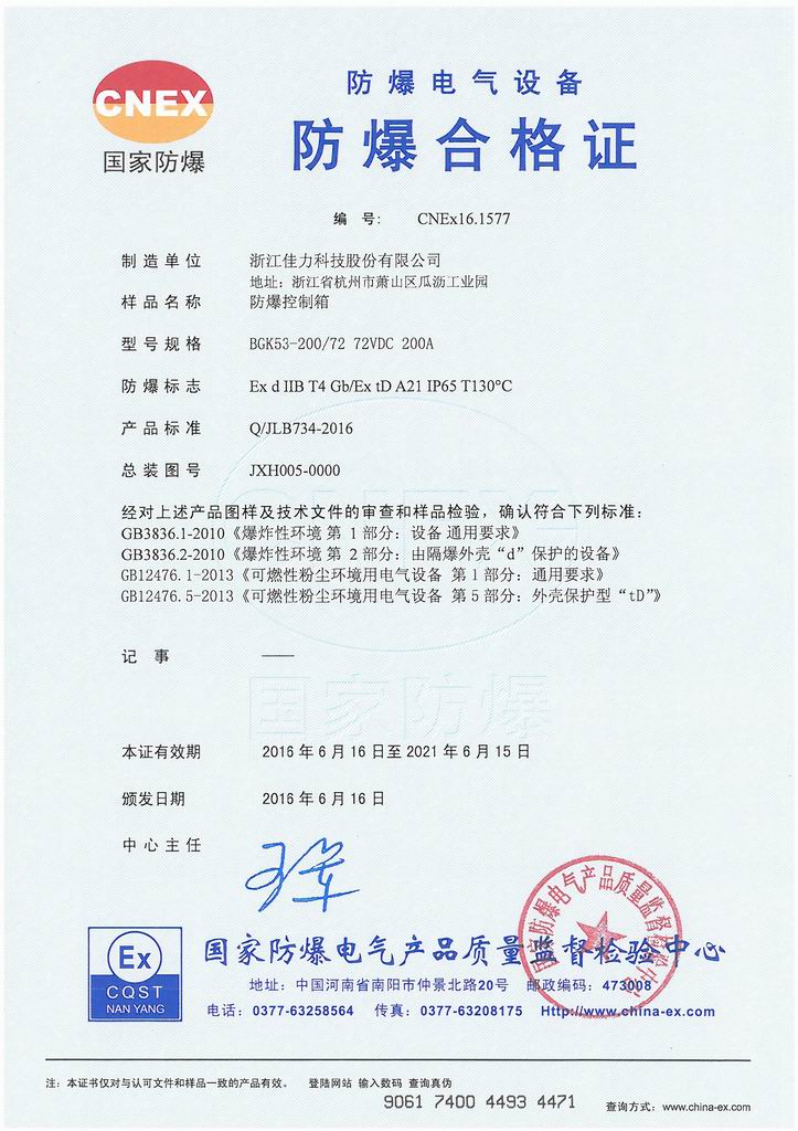防爆證書>>詳細(xì)信息