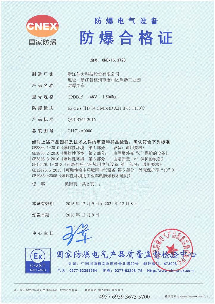 防爆證書>>詳細(xì)信息